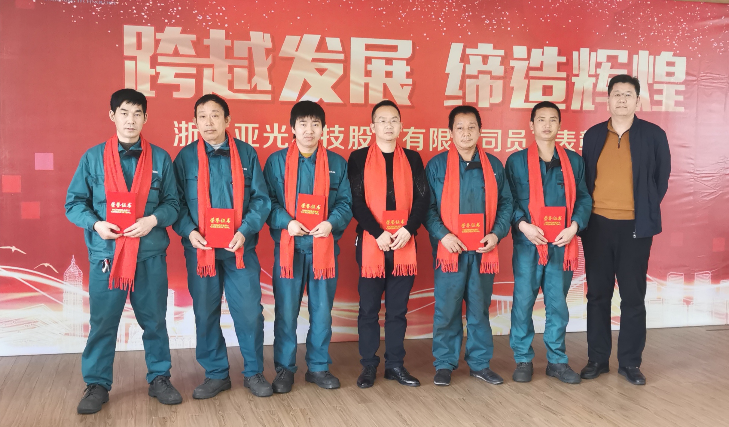 員工是企業的根基,優秀的員工是企業制勝的法寶。正是他們不懈的努力和無私奉獻換來了亞光公司的不斷進步。表彰大會首先進行了頒獎儀式,由主持人宣讀了表彰名單,相繼頒出了十年功勛員工、焊工技能大賽優勝員工、優秀員工,共計獲獎人數44人。公司高層領導分別為各獲獎者頒發了榮譽證書、獎杯和獎金,對他們取得的成績給予了充分的肯定和高度的贊譽。